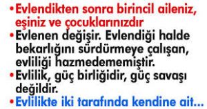• Evlendikten sonra birincil aileniz, eşiniz ve çocuklarınızdır.