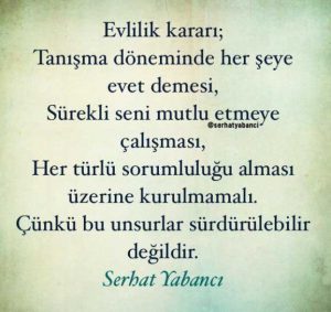 Nedeni ise uyum, anlaşma, kaliteli zaman geçirme, ortak noktalar değil, sadece “aldığına bakarak karar vermen”.