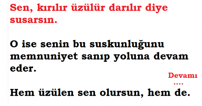 Ve hem üzülen sen olursun, hem de sustuğun için suçlanan sen..