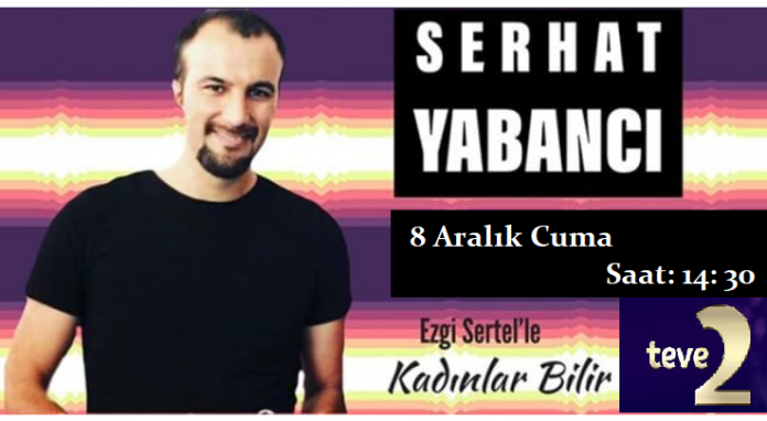 ETKİNLİKLER Serhat Yabancı TEVE2 de “kıskançlığı ” konuşacak By Serhat Yabancı - 5 Aralık 2017 0 1415 Facebook Twitter Google+ Pinterest WhatsApp Serhat Yabancı , 8 Aralık cuma saat 14:30 da TEVE2 de Ezgi Sertel ‘in sunduğu “kadınlar Bilir” programına konuk olacaktır… Bu hafta; “KISKANÇLIK” konusu ele alınacaktır… Facebook Twitter Google+ Pinterest LinkedIn