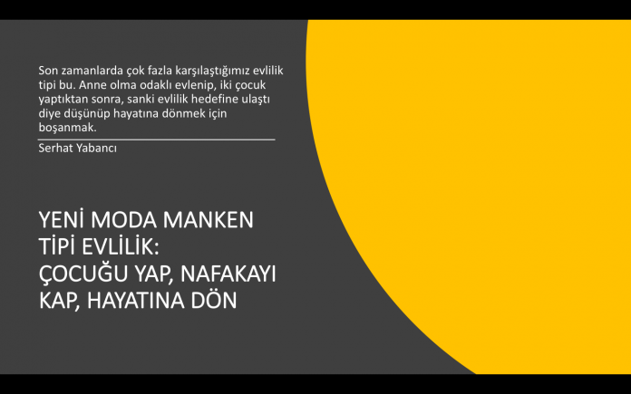 Son zamanlarda çok fazla karşılaştığımız evlilik tipi bu. Anne olma odaklı evlenip, iki çocuk yaptıktan sonra, sanki evlilik hedefine ulaştı diye düşünüp hayatına dönmek için boşanmak.