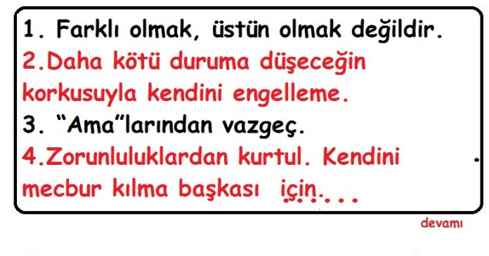 - Devamlı birilerinden onay ve fikir alma. Hata da olsa kendi kararın olsun.